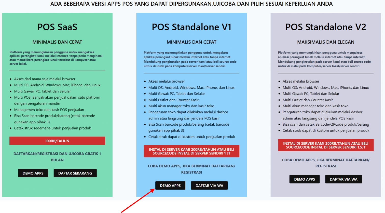 Sebelum registrasi atau mendaftar coba dulu demo aplikasi POS SaaS, caranya