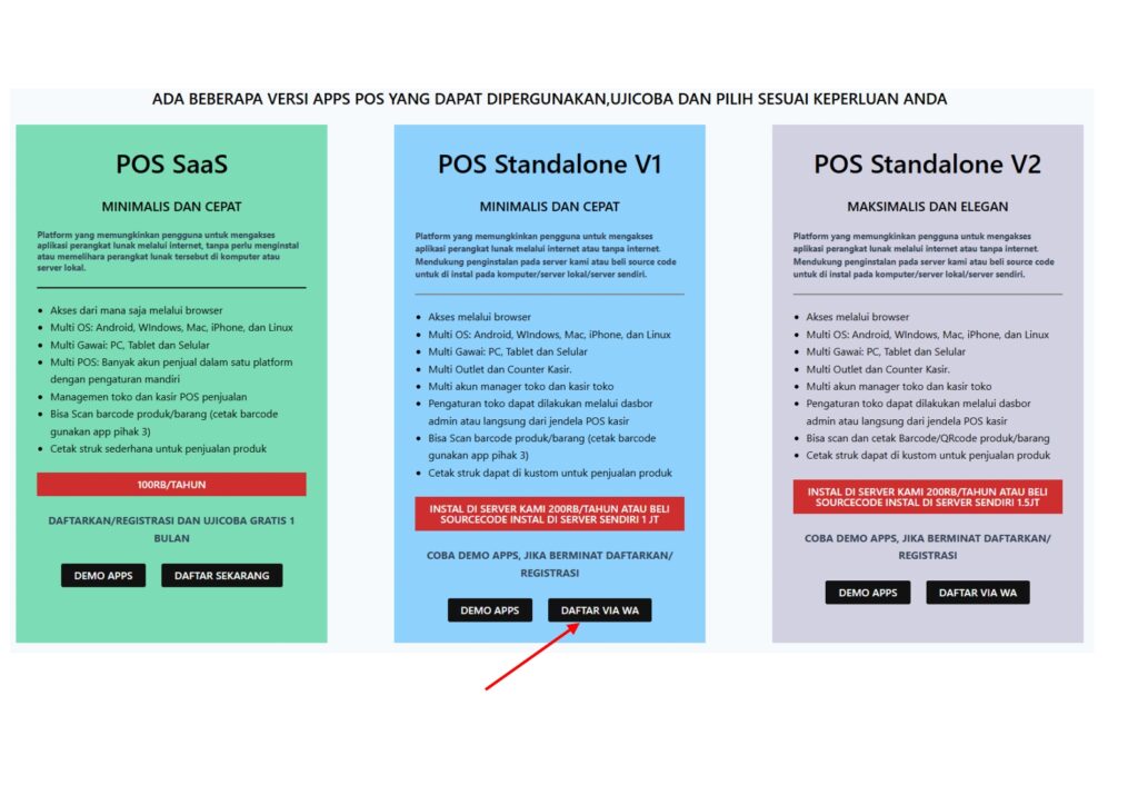 - klik/tap tombol regristasi Via WA pada list info POS standlone V1